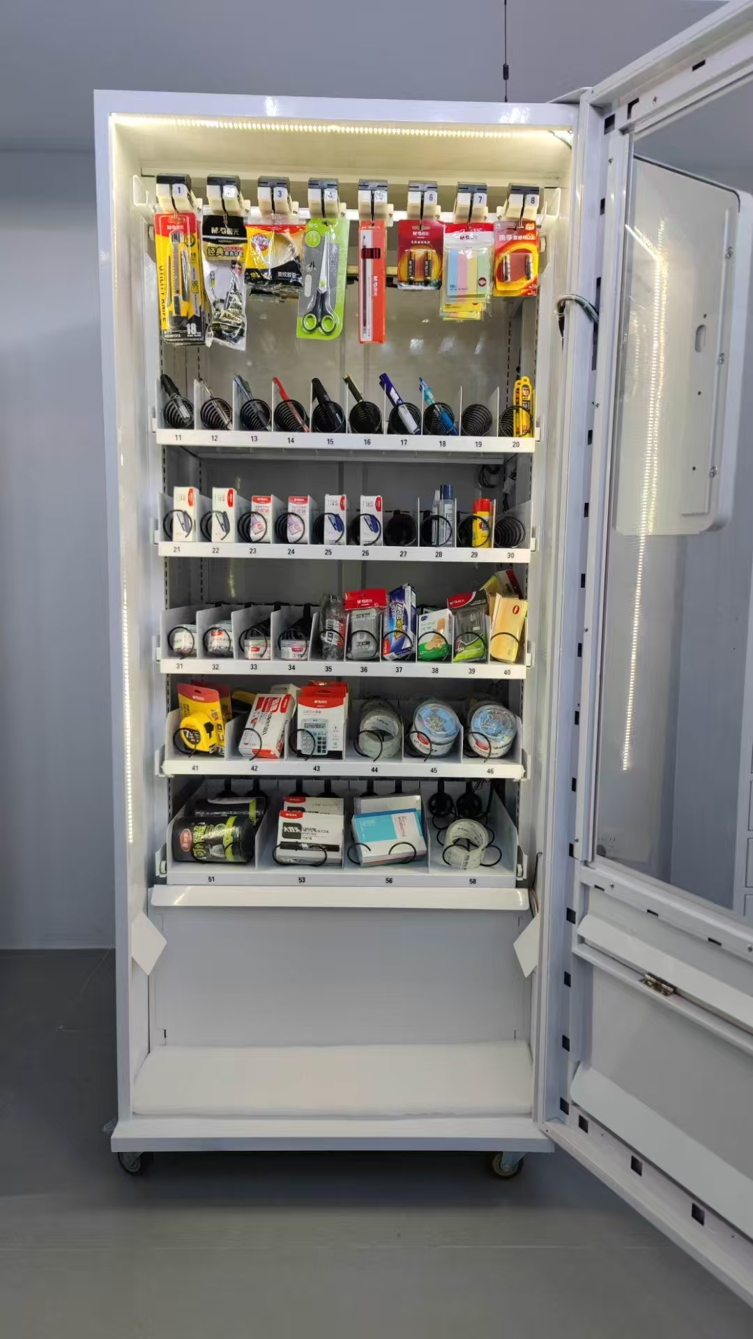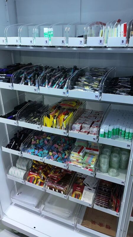De Office Supply Inventory-oplossing (TVM-1900) heeft tot doel 24/7 beschikbaarheid van kantoorbenodigdheden te bieden, uw team aan te passen aan nieuwe flexibele werkwijzen en de efficiëntie te verbeteren.Multi-dispensatieoplossing die geschikt is voor verschillende kantoorbenodigdheden, van klein tot groot, in verschillende verpakkingen.